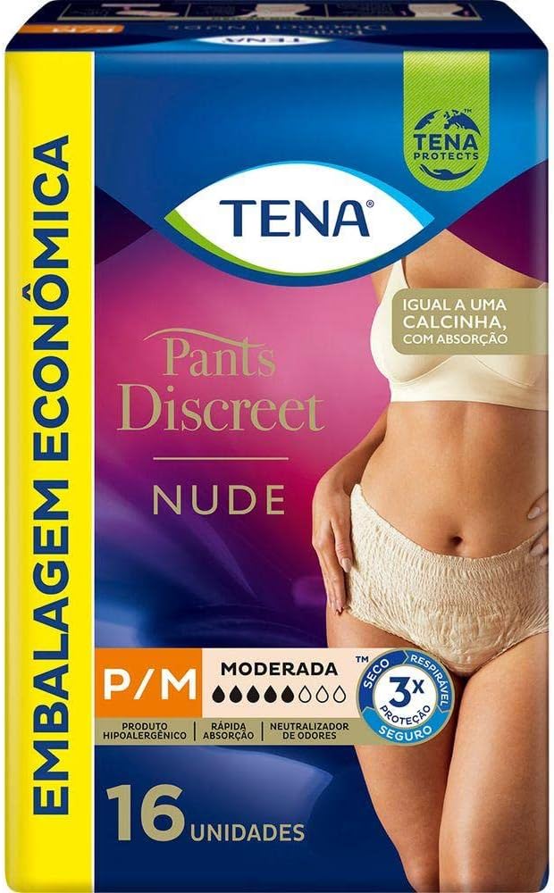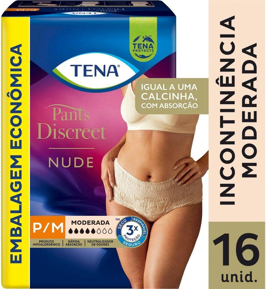 Tena Pants Discreet, Calcinha Descartável para Incontinência Urinária, Nude, P/M – 16 unidades