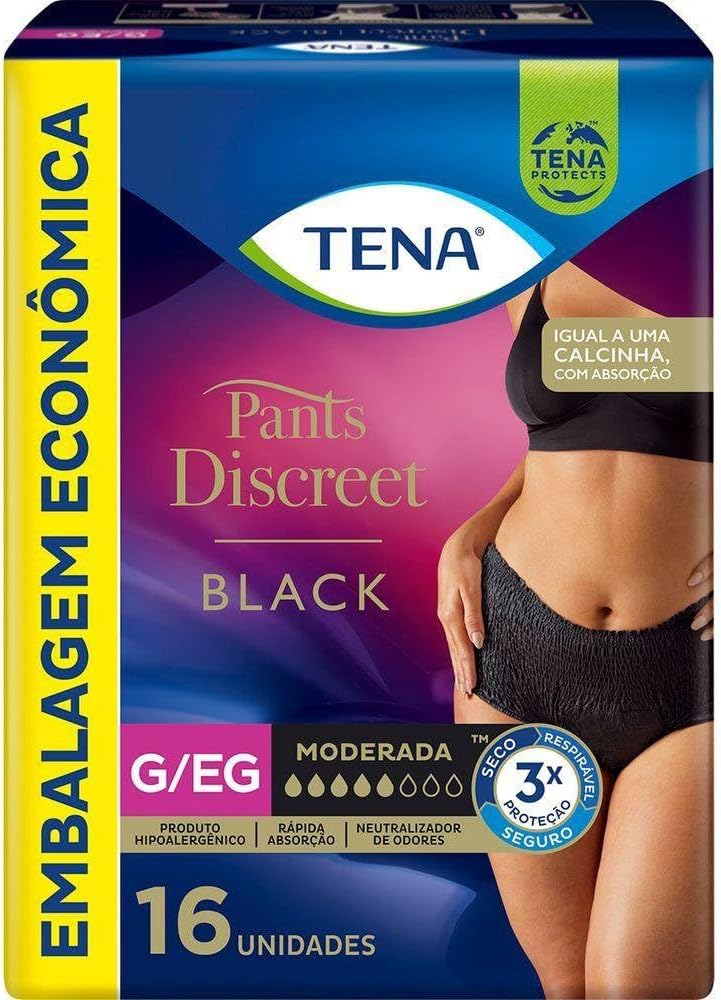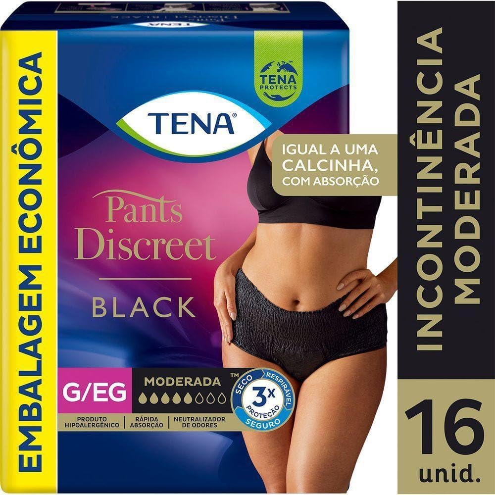 Tena Pants Discreet, Calcinha Descartável para Incontinência Urinária, Preto, G/EG – 16 unidades