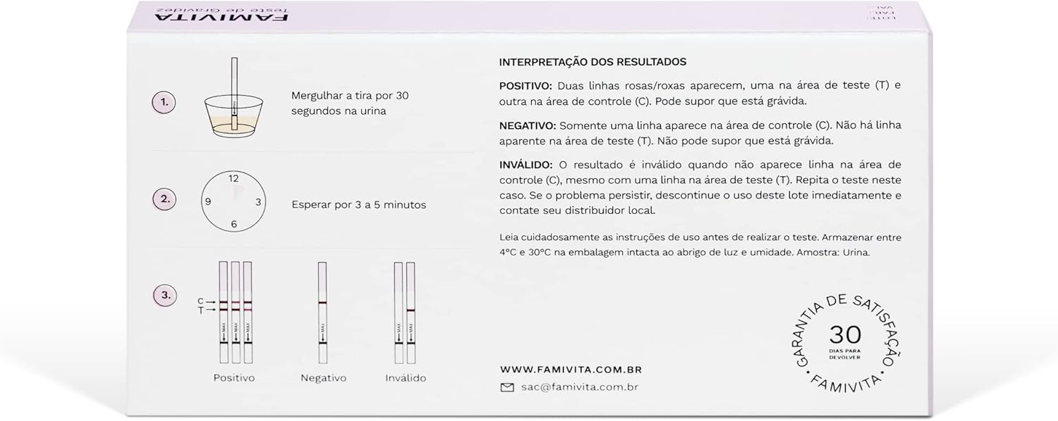 O Teste de Gravidez Famivita é uma solução prática e confiável para mulheres que desejam confirmar uma possível gravidez antes do atraso menstrual. Com uma sensibilidade de 10mUI, este teste é capaz de detectar o hormônio HCG até 2 dias antes do esperado. Isso significa que você pode ter uma resposta mais rápida e se preparar para o próximo passo em sua jornada. O uso é simples e a interpretação dos resultados é fácil, o que ajuda a reduzir a ansiedade que muitas mulheres sentem nesse momento.