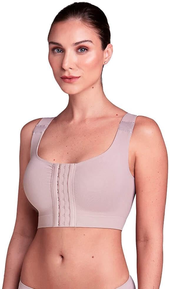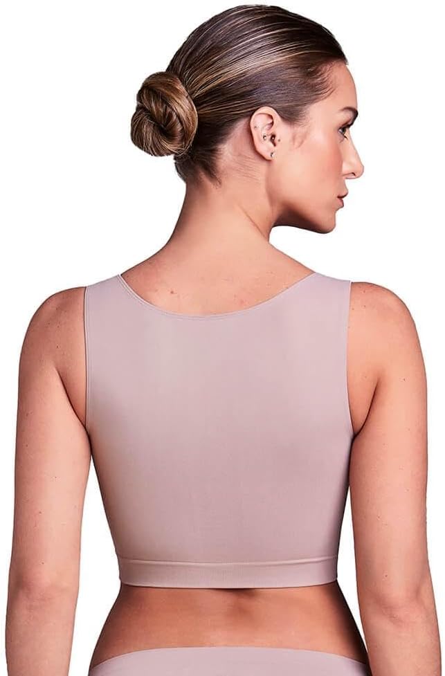 O Top Pós Cirúrgico Plie (50339) é ideal para o período pós-operatório, confeccionado em microfibra com elasticidade balanceada. Este modelo sem ar e sem bojo proporciona liberdade de movimento, essencial para a recuperação. Possui abertura frontal com colchetes de tripla regulagem, e alças largas que oferecem suporte adicional. O tecido com tratamento hidrofílico permite que a pele respire livremente, aumentando o conforto durante o uso.