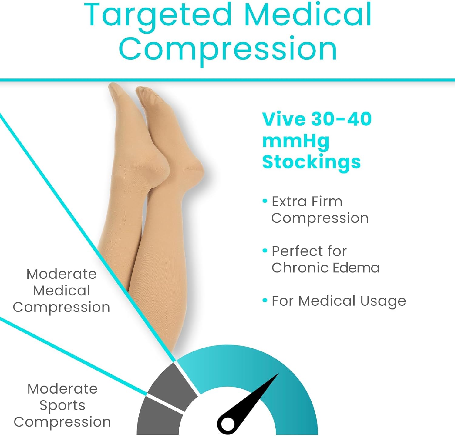 Vive Meias de Compressão 30-40 Mmhg para Mulheres E Homens, Até O Joelho – Meias de Compressão Graduada de Grau Médico para Suporte Da Circulação – Ideais para Linfedema, Trombose Venosa Profunda