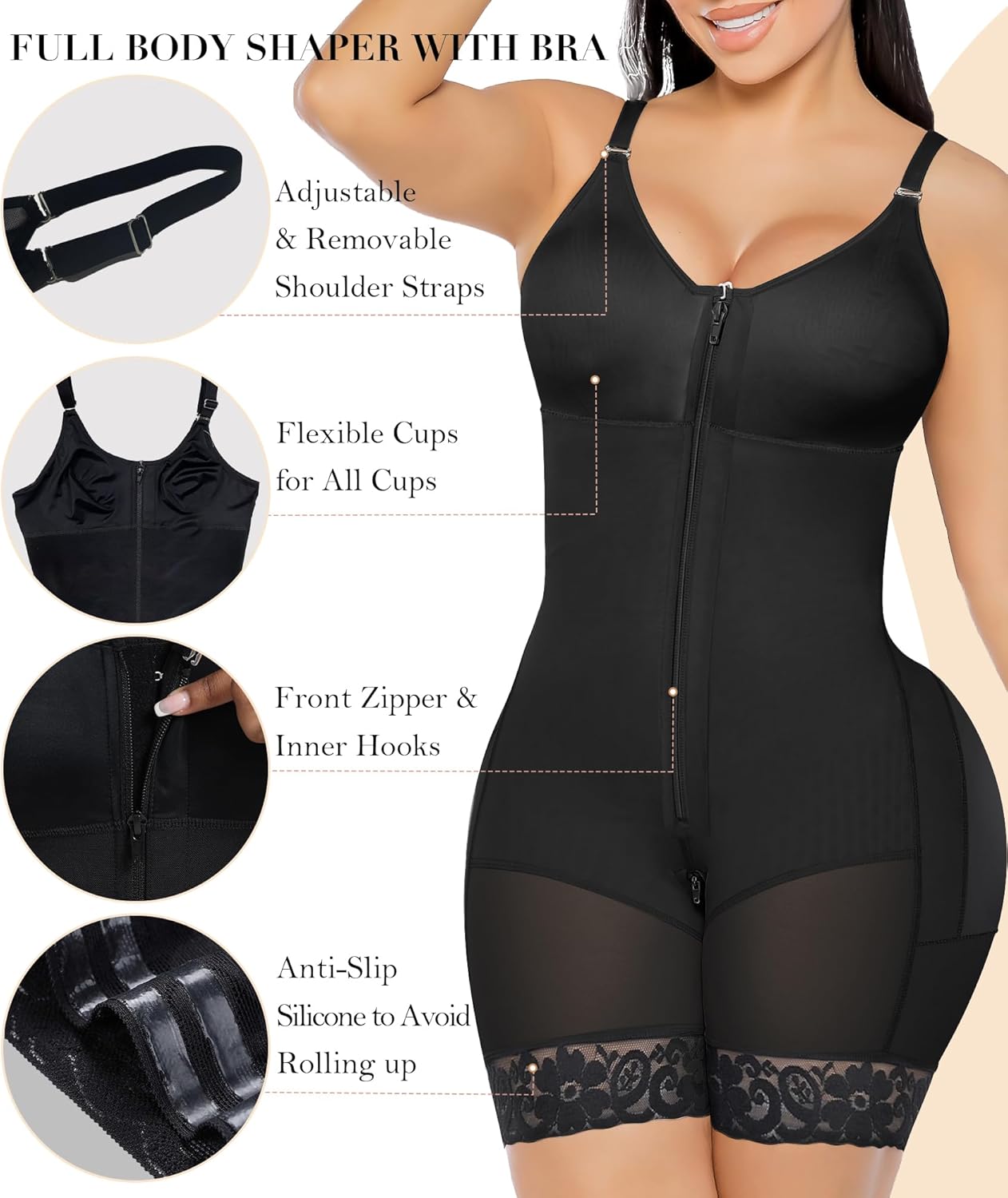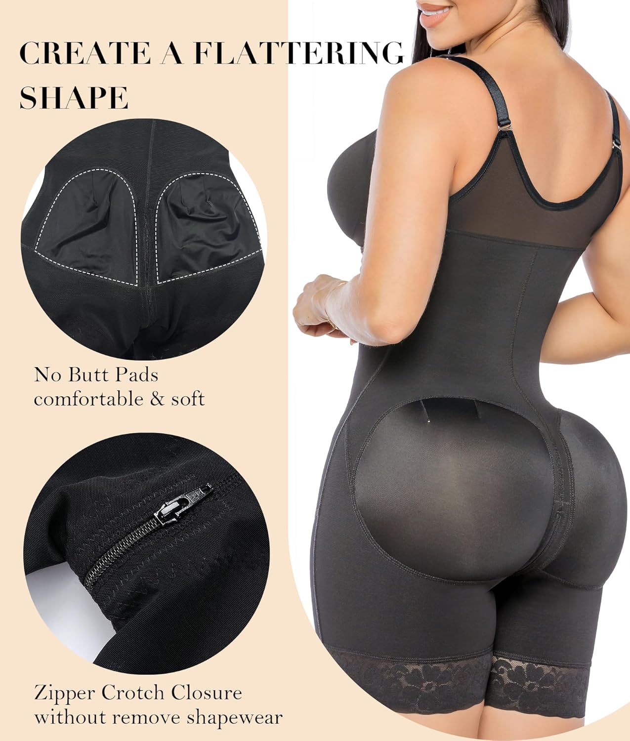 YIANNA Modeladora Fajas Colombianas pós-parto para mulheres, controle de barriga, levanta bumbum, modelador corporal com zíper na virilha